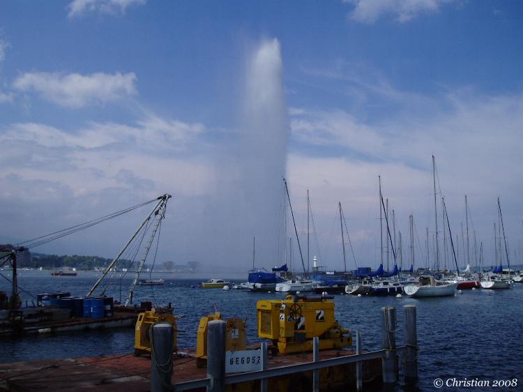Le jet d'eau en mai et l'embarcadère pour les mouettes...